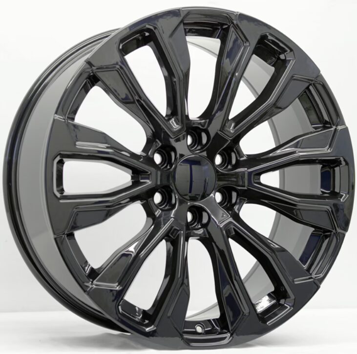 Gloss black 22×9 replica wheel designed for Chevy, GMC, and Cadillac trucks. Sleek OEM-inspired design, 6×139.7 bolt pattern, and +31 offset.